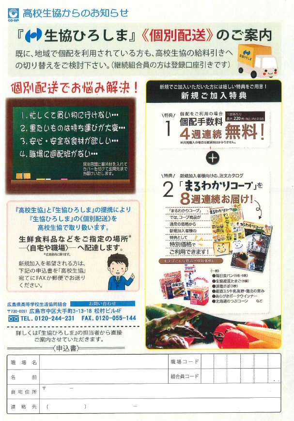 広島県高等学校生活協同組合のホームページです